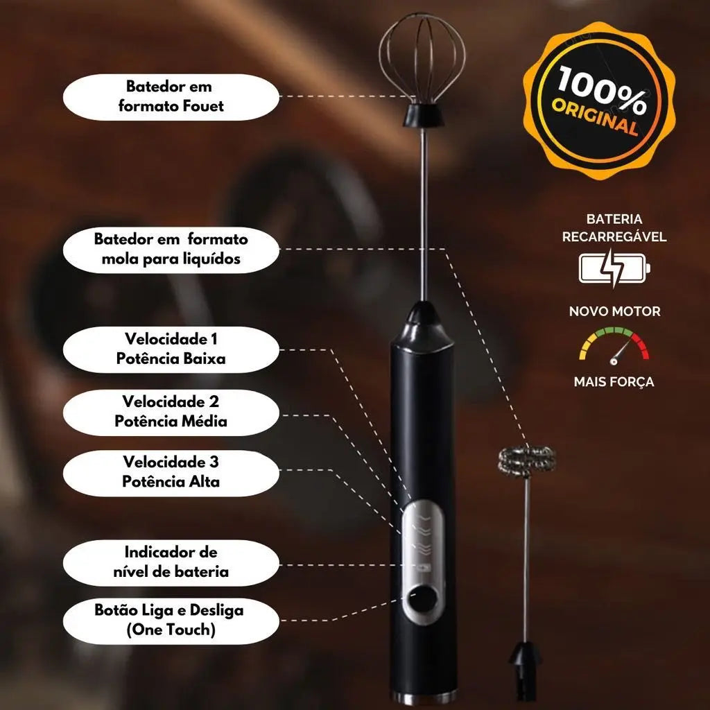 ✅ Multifuncional: ideal para bater cafés, shakes, cremes e omeletes